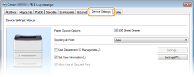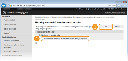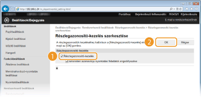 Jelölje be a [Use Department ID Management] (Részlegazonosító kezelése) jelölőnégyzetet, és kattintson a tőle jobbra található [Settings] (Beállítások) gombra.