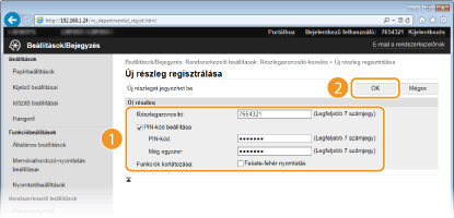 Adjon meg a legfeljebb hét számjegyből álló PIN-kódot, ha a részlegazonosítóhoz tartozik PIN-kód.