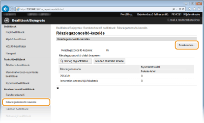 Szerkesztéshez a [Részlegazonosító] résznél kattintson a megfelelő szöveges hivatkozásra.