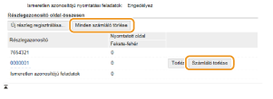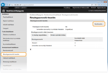Ha szeretné nullázni egy azonosító nyilvántartását, akkor a [Részlegazonosító] részben kattintson a megfelelő szöveges hivatkozásra, majd kattintson a [Számláló törlése]