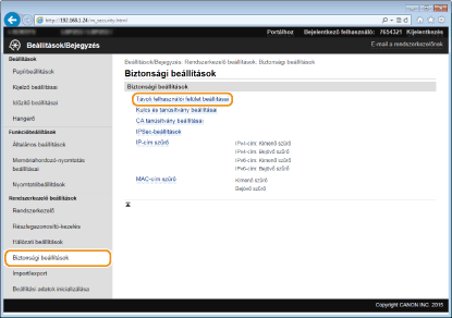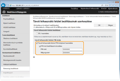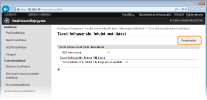 ![]() A kezelőpanel használatávalA Távoli felhasználói felület PIN kódját a kezelőpanel