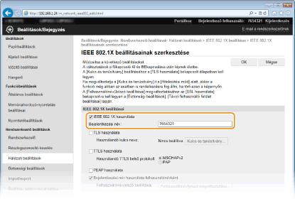gombjával is engedélyezheti vagy letilthatja. IEEE 802.1X beállításai |