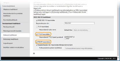 Jelölje be a [TTLS használata] vagy [PEAP használata] jelölőnégyzetet.