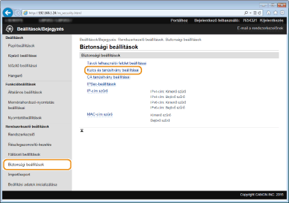 Kattintson az [Biztonsági beállítások]