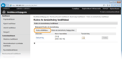 [Kulcs és tanúsítvány beállításai] gombra.