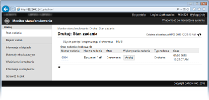 Zdalny interfejs użytkownika umożliwia zdalne zarządzanie urządzeniem przy pomocy komputera. Dzięki niemu można sprawdzić ilość pozostałego papieru oraz toneru w kasecie z tonerem, a także sprawdzić bieżący stan zadań drukowania, aby zadecydować, czy należy przerwać bieżące zadania, aby wydrukować bardziej pilne dokumenty lub przesunąć dokumenty wyżej względem innych zadań oczekujących na wydrukowanie. Dzięki temu nie trzeba wstawać od biurka i można zaoszczędzić czas.