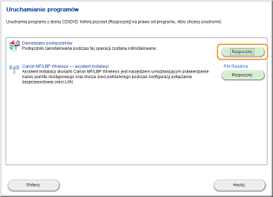 Kliknij przycisk [Rozpocznij] w obszarze [Deinstalator podręczników].