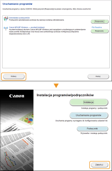 Jeżeli zostało wyświetlone okno [Autoodtwarzanie], kliknąć polecenie [Uruchom MInst.exe].