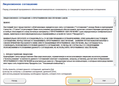 Прочитайте лицензионное соглашение и нажмите [Yes], чтобы принять его.