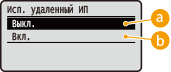 Удаленный ИП полезен для настройки аппарата с помощью веб-браузера на компьютере. Для использования Удаленного ИП необходимо подключить аппарат к компьютеру посредством сети. Если аппарат подключен к компьютеру посредством USB-соединения или использование Удаленного ИП не требуется, можно отключить Удаленный ИП, снизив тем самым риск удаленного сетевого управления аппаратом злоумышленниками.
