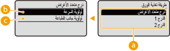 الورق)، فإنه يتم تطبيق <أولوية السرعة> على مصدر الورق بدلاً من ذلك. وفي هذه الحالة، يلزم تحميل الورق بنفس طريقة تحميله عند تحديد <أولوية السرعة> (