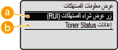 <عرض معلومات المواد المستهلكة (Toner Status/RUI)>