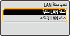 حدد <شبكة LAN سلكية> أو <شبكة LAN لاسلكية>، واضغط على
