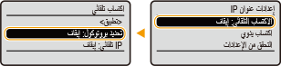 وقم بتعيين كل من <تحديد بروتوكول> و<IP تلقائي> إلى <إيقاف>. |