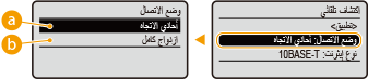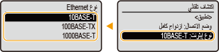 حدد نوع Ethernet. ![]() ![]() ![]() عندما يتم ضبط <وضع الاتصال> على <أحادي الاتجاه>، فإنه لا يمكنك تحديد <1000BASE-T>.