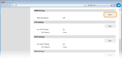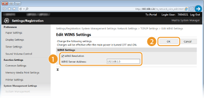 سيتم تسجيل اسم NetBIOS للجهاز في خادم WINS كـ "أحرف Canon متبوعة بآخر ستة أرقام من عنوان MAC"، واسم مجموعة العمل الخاصة به كـ "WORKGROUP".