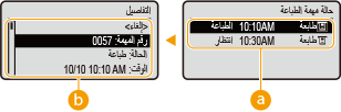.![]() <حالة مهمة الطباعة>يعرض قائمة بالمستندات التي تتم معالجتها حاليًا أو في انتظار المعالجة.
