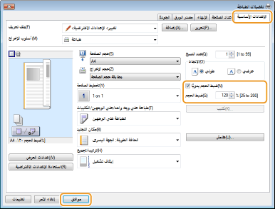 أدخل نسبة الطباعة في [ضبط الحجم]