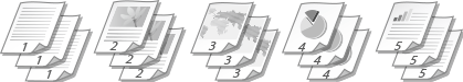 عند طباعة نُسخ من مستندات متعددة الصفحات، حدد [ترتيب] لطباعة مجموعات كاملة بترتيب صفحات تسلسلي. وهذه الوظيفة مفيدة عند إعداد المطبوعات للاجتماعات أو العروض التقديمية.
