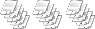 يتم تجميع المطبوعات في مجموعات كاملة بترتيب صفحات تسلسلي. على سبيل المثال، إذا كنت تقوم بطباعة ثلاث نسخ من مستند مكون من خمس صفحات، فسيتم ترتيب المطبوعات بترتيب الصفحات التالي: ١، ٢، ٣، ٤، ٥، ١، ٢، ٣، ٤، ٥، ١، ٢، ٣، ٤، ٥.