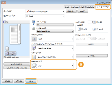 إذا قمت بتحديد [إيقاف تشغيل]، فسيكون ترتيب المطبوعات من عدمه وفقًا للإعداد الوارد في التطبيق.