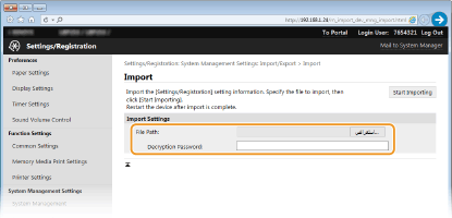 قم بإدخال كلمة المرور التي تم تحديدها عند تصدير الإعدادات.