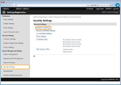 على لوحة التشغيل. إعدادات واجهة المستخدم البعيدةإذا أعيد ضبط واجهة المستخدم عن بعد Remote UI على الإعدادات الافتراضيةيُعاد أيضا ضبط رمز المرور PIN لدخول واجهة المستخدم عن بعد Remote UI إلى الإعدادات الافتراضية. بعد إعادة الضبط إلى الإعدادات الافتراضية، أعد ضبط رمز المرور PIN. تهيئة القائمة