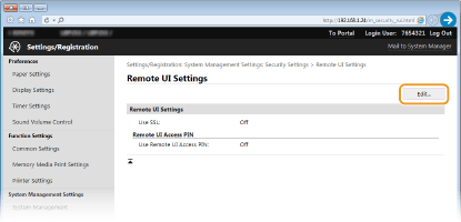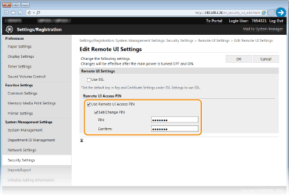 ![]() استخدام لوحة التشغيلكما يمكنك تعيين رمز دخول PIN لواجهة المستخدم عن بعد من خلال الضغط على