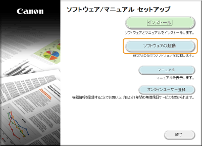 上記の画面が表示されないとき [ソフトウェア/マニュアル セットアップ]画面の表示方法