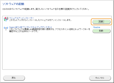 [マニュアルアンインストーラー]の[起動]をクリックする