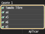 Para mostrar los tamaños de papel cuyas casillas de verificación se han desmarcado, pulse <Otros tamaños> en la pantalla de selección de tamaño de papel.