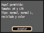 Compruebe que se hayan cargado en el equipo el tamaño y el tipo de papel que indica el dispositivo, y pulse <Aceptar>.