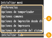 Si se inicializan las opciones de la IU remotaEl PIN de acceso a la IU remota también se inicializa.Tras una inicialización, vuelva a establecer el PIN de acceso a la IU remota. Configuración de un PIN para la IU Remota