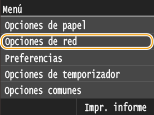 Todas las opciones sobre la red se muestran con descripciones breves. Las opciones predeterminadas aparecen marcadas con una cruz (