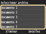 Si se conservan en la memoria documentos protegidos de dos o más usuarios, aparecerá la pantalla <Seleccione usuario> antes que la pantalla <Seleccionar archivo>.Seleccione su nombre de usuario.
