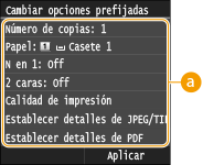 . Si cambia estas opciones predeterminadas para adaptarlas a las operaciones que realiza con mayor frecuencia, puede eliminar la necesidad de especificar las mismas opciones cada vez que imprima.