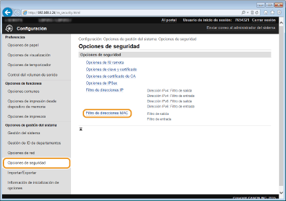 Haga clic en [Opciones de seguridad]  [Filtro de direcciones MAC].