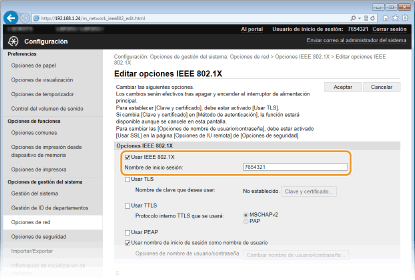 Seleccione la casilla de verificación [Usar TTLS] o [Usar PEAP].