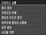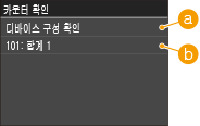 )을 누르면 <카운터 확인> 화면이 표시됩니다. 이 화면에서 기기의 일련 번호 및 기기 구성을 비롯한, 인쇄물의 카운터 값을 볼 수 있습니다.