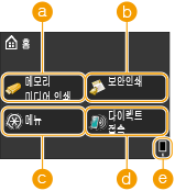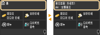 을 누르면 홈 화면이 표시됩니다. 이 화면에서 설정 및 등록 기능을 지정할 수 있습니다.