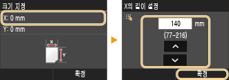/ 또는 숫자 키를 눌러 <X> 쪽의 길이를 입력하고 <확정>을 누릅니다.![]() |