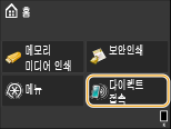 홈 화면에서 <다이렉트 접속>을 누릅니다. 이제 모바일 장치를 기기에 연결할 수 있습니다.