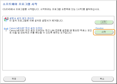 [Canon MF/LBP 무선 설치 도우미]에서 [시작]을 클릭합니다.