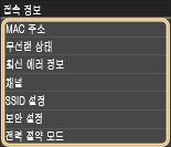 에서 무선랜 상태> 및 <최신 에러 정보>를 볼 수 있습니다.