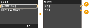 <반이중> 또는 <전이중>을 누릅니다.![]() <반이중>통신 데이터를 교대로 송수신 합니다. 기기가 반이중을 사용하는 네트워크 장치에 연결된 경우에 선택합니다.
