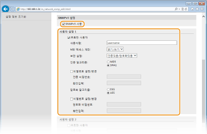 SNMPv3를 사용하면 강력한 보안 기능으로 보호되는 네트워크 장치 관리를 구현할 수 있습니다. SNMPv3를 구성하기 전에 리모트 UI에 대해 TLS를 반드시 활성화해야 합니다(