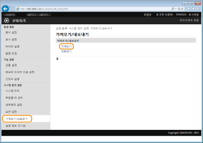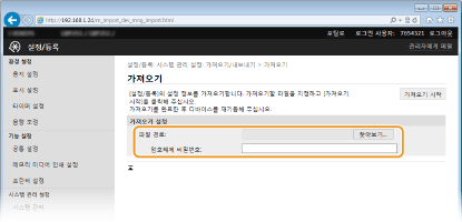 기기에서 내보낸 데이터를 로드합니다(가져오기). 또한 사용 중인 기기와 동일한 모델인 경우 다른 기기에서 설정을 가져올 수도 있습니다.