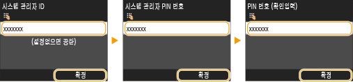 ![]() 시스템 관리 ID 및 PIN의 출고시 기본 설정은 모두 "7654321"입니다. 보안상의 관점에서는 이 값을 사용하지 않는 것이 좋습니다. 다음 절차에 따라 값을 변경하는 것이 좋습니다.