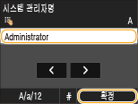 시스템 관리자 이름에 대해 최대 32자를 입력하고 <확정>을 누릅니다. 텍스트 입력