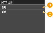 HTTP는 리모트 UI를 통해 기기에 액세스하는 경우 등 네트워크를 통한 통신에 사용됩니다. USB 연결을 사용 중이거나 HTTP를 사용하고 있지 않은 경우 HTTP를 비활성화하여 악의적인 제 3자가 사용하지 않는 HTTP 포트를 통해 침입하는 것을 차단할 수 있습니다.